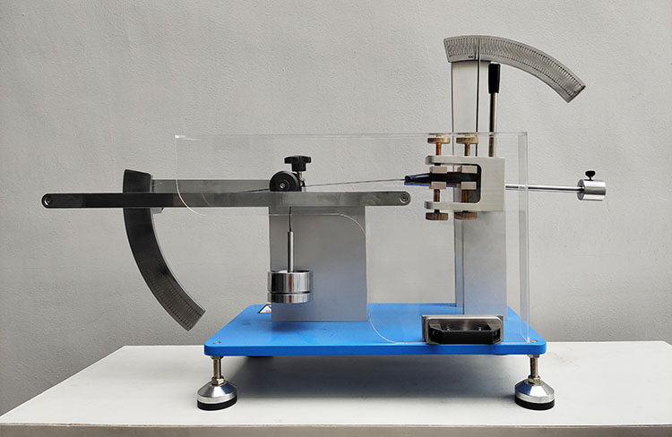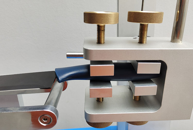 本產品可對刀具、餐具類產品如臺面用匙、飯菜叉、臺面用叉、點心刀、飯菜刀、臺面用刀等進行抗彎測試,以此評定刀具抗彎的性能。 在不掛砝碼的狀態(tài)下裝好試樣,調節(jié)左右兩邊指針至零刻度處,再對刀刃施加一定重量的砝碼,用手操縱桿轉動中心軸直至把端部夾鉗從軌道上抬起為止,并維持10S,然后把操縱桿放回,卸去負荷,從左刻度盤上讀出所偏移的角度,翻轉試件,重復試驗一次,觀察兩次試驗后試樣的損壞情況,若產生3°的永久變形,則證明樣品不合格。 設計標準:GB/T 15067.2-2016、ISO 8442-1-1997 | ||