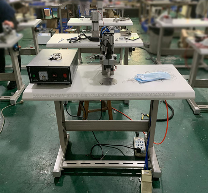 本機采用超聲波進行焊接,有效的克服傳統超聲波點焊之后出現的斷帶、焊接不牢等問題;特殊的人性化底模設計,加配紅外線定位裝置,確保人員操作時定位不準、口罩偏移等技術難點。 可用于杯形口罩、立體口罩耳帶點焊及織帶、魔術貼、工藝品、小型塑膠件等點焊接. |