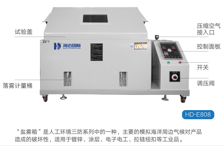 人工模擬鹽霧試驗(yàn)又包括中性鹽霧試驗(yàn)、醋酸鹽霧試驗(yàn)、銅鹽加速醋酸鹽霧試驗(yàn)、交變鹽霧試驗(yàn)。