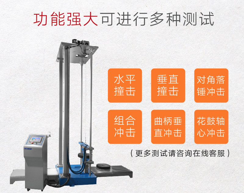 重錘質量:100Kg(可調) 砝碼提升速度:0-150/min可調 上下限動裝置: 升降上限、下限保護開關及定位設定 控制方式:可編程控制器+PLC觸摸屏控制(顯示沖擊z大力度)(數據U盤導出) 配套夾具:滑板車車架沖擊夾具、滑板車前叉沖擊夾具、滑板車減震上管