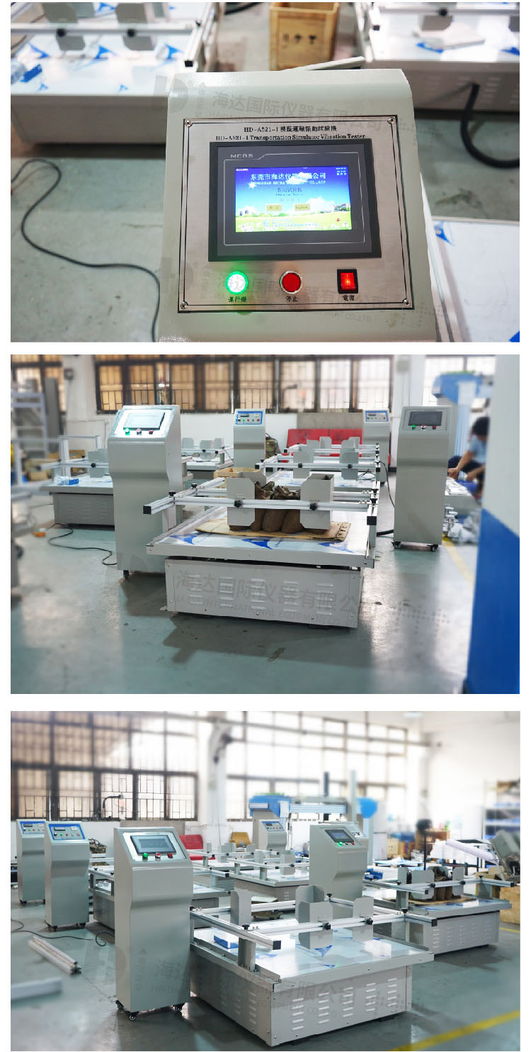 模擬運輸振動試驗臺適用于玩具、電子、家具、禮品、陶瓷、通訊、器材、計算機及汽機車零件的震動試驗等,用來視察其耐運輸效果或耐久性均勻。 特點 設計標準:EN71 ANSI、UL、ASTM ISTA | ||