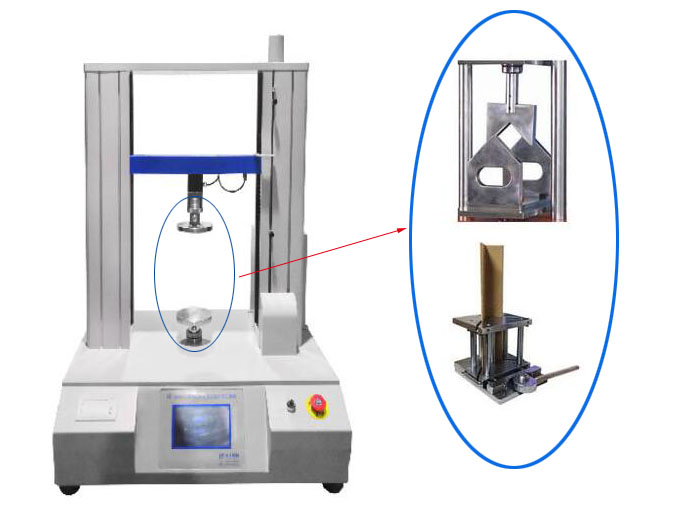 4.3環壓用于厚度在1mm以下之瓦楞芯紙及牛皮紙等。試樣152X12.7mm置于環狀之容器內,以本機檢驗其直立方向之耐壓強度。 4.4邊壓用于厚度在8mm以下之瓦楞紙,試樣100mm乘以25mm置于100mm乘以100mm壓板下用兩塊導塊固定,以本機檢驗其直立方向之豎壓強度。 4.5配合各種附件使用,并可測試紙板之膠合強度及平壓強度。 | ||